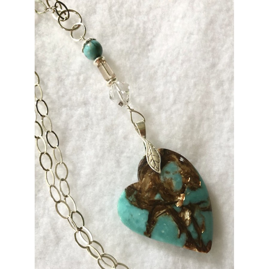 collier pendentif bornite, citrine, turquoise,Swarovski et argent sterling