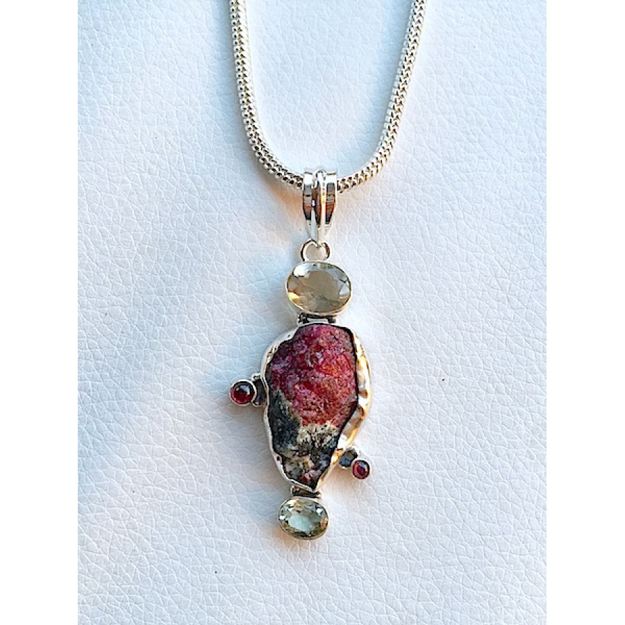 322 collier eudialyte, prasiolite, grenat,argent sterling