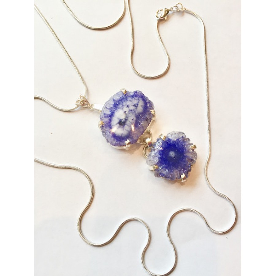 308 collier pendentif agate druzzy violet, chaine serpent argent sterling