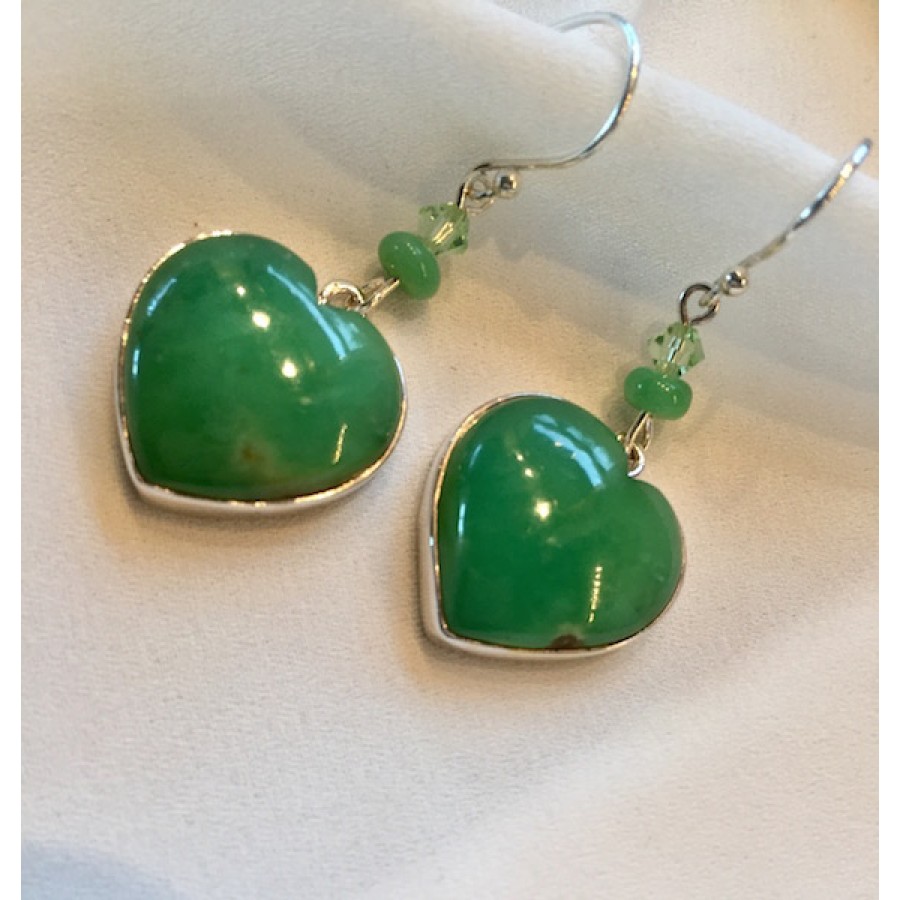 659 boucles d'oreilles coeur chrysoprase, argent sterling