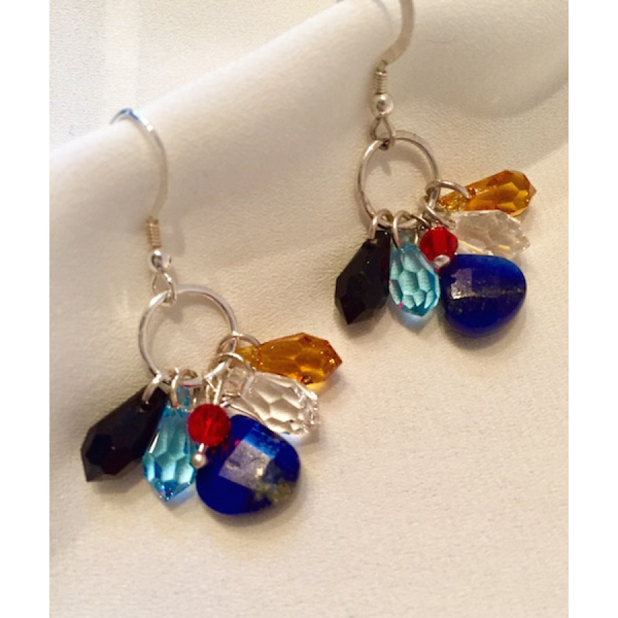 647 Boucles d'oreilles larmes de swarovski, lapis lazuli, argent sterling